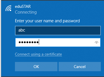 3. Enter your eduPass User ID and Password and click ‘OK’ then ‘Connect’