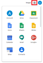5. Now click on the 3 by 3 small dotted square next to your account and navigate to whatever resource you need (G-Suite,Classroom,Drive etc.)