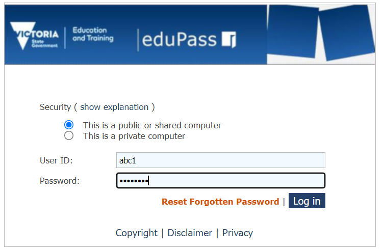 - Make sure “sign in with eduPass” is in the dropdown box and click “Proceed”