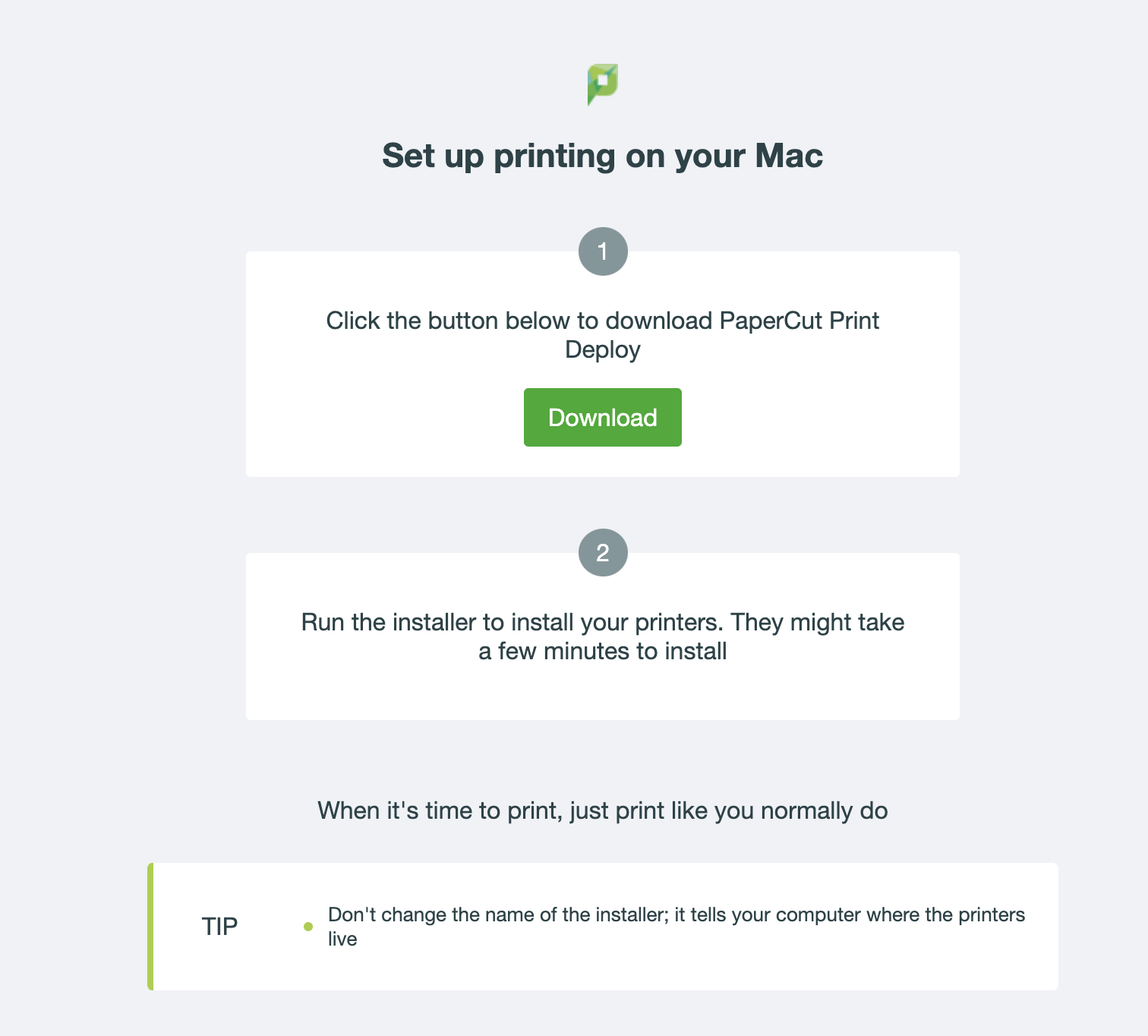 Download Print DeployOn the Page, Click the green “Download” button.