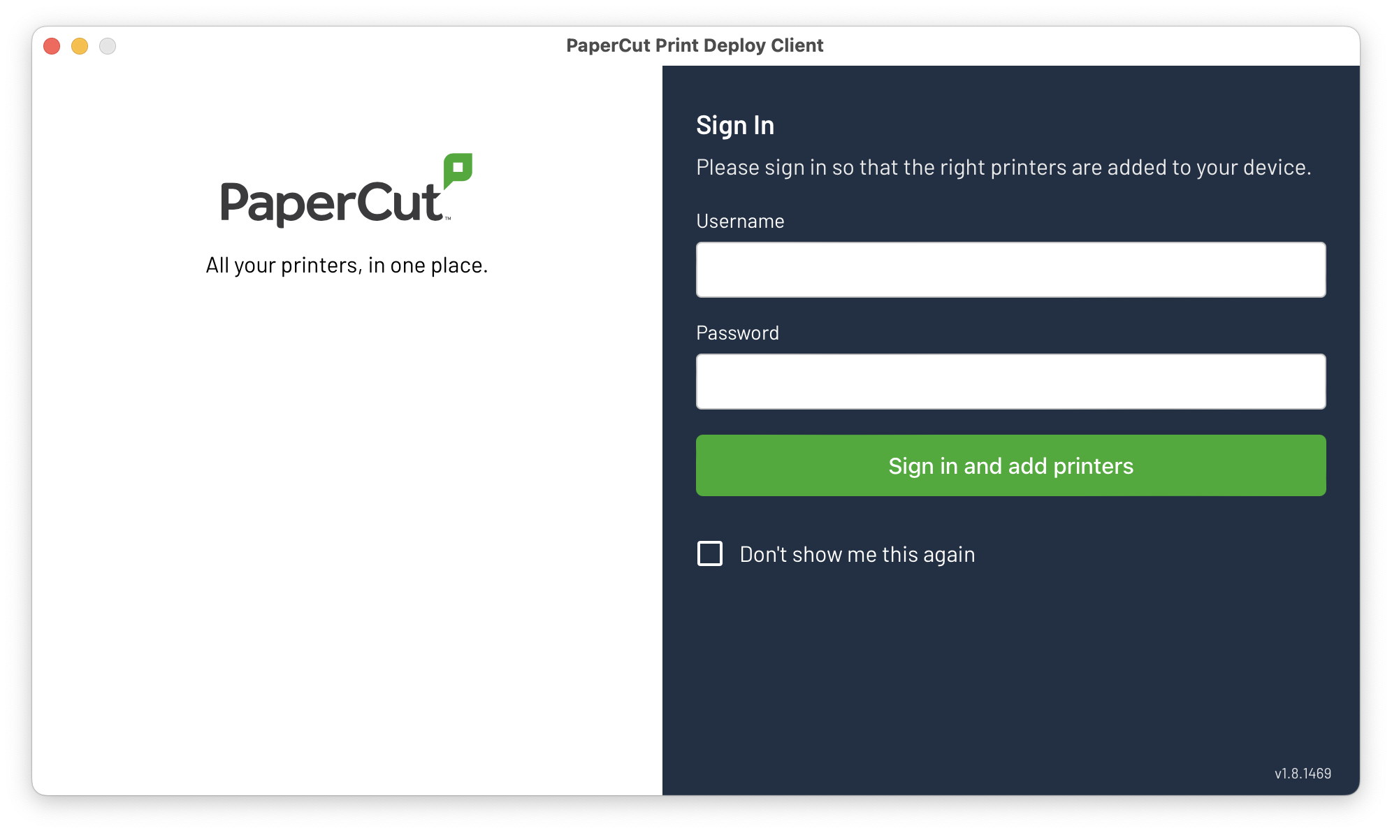 When you make your first print job with your Mac, you will get a "Hold for Authentication" error or a dialogue box requiring a username and password.