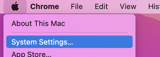 - Click on the Apple icon on the menu Screen, click System settings from the drop-down list.